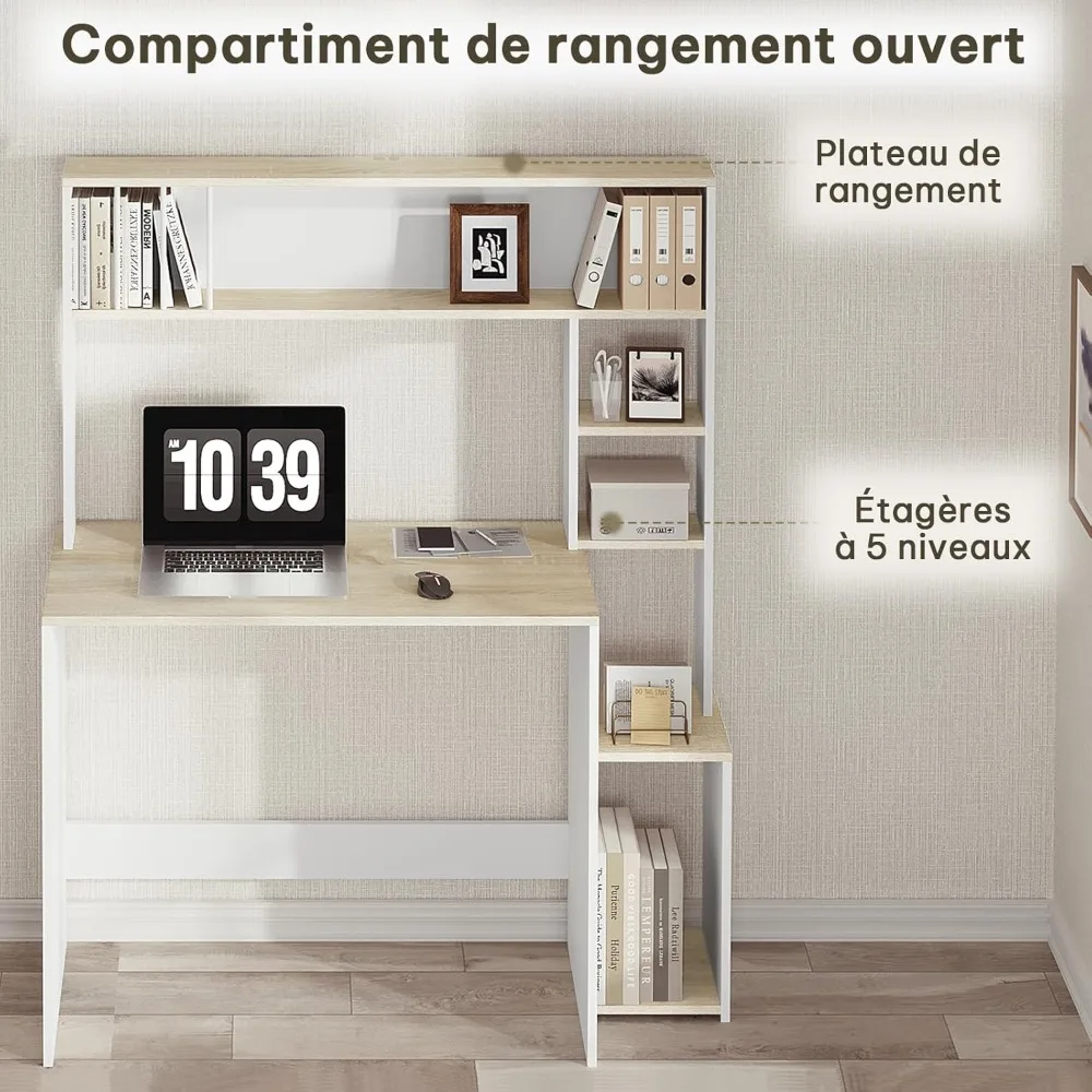 This innovative computer desk combines functionality with smart storage solutions. Featuring 5 open compartments, you can easily organize all your work essentials while keeping them within reach.
